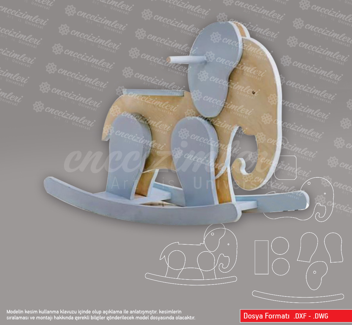 * Model ( DXF )  formatında’dır ve kolaylıkla birçok programda, “dışarıdan al” (import) seçeneği ile açılabilmektedir.