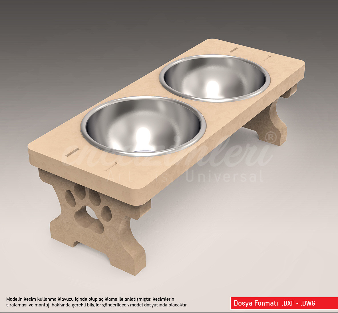* Model ( DXF )  formatında’dır ve kolaylıkla birçok programda, “dışarıdan al” (import) seçeneği ile açılabilmektedir.