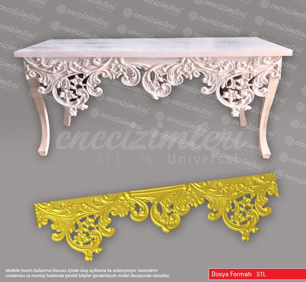 * Model ( DXF, STL ) formatında’dır ve kolaylıkla birçok programda, “dışarıdan al” (import) seçeneği ile açılabilmektedir.